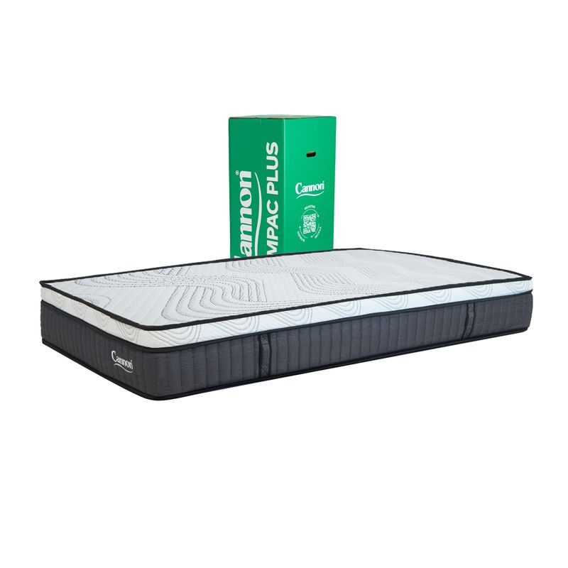 El Colchón Cannon Compac Plus es muy práctico porque viene en caja, así que lo podes comprar y llevar en el momento para usarlo dónde y cuándo quieras, y gracias a su tecnología Roll Pack, se transporta comprimido sin alterar sus propiedades. Está fabricado con un sistema de resortes pockets (individuales) enfundados y marcos de espuma de alta resistencia para ofrecer suavidad en el punto de apoyo, logrando una mayor adaptabilidad al cuerpo, sea cual sea la forma de dormir.